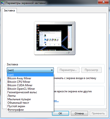 - Активация экранной заставки для Windows Screensaver RPC Miners