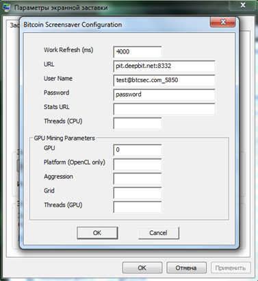 - Настройте параметры майнинга Windows Screensaver RPC Miners